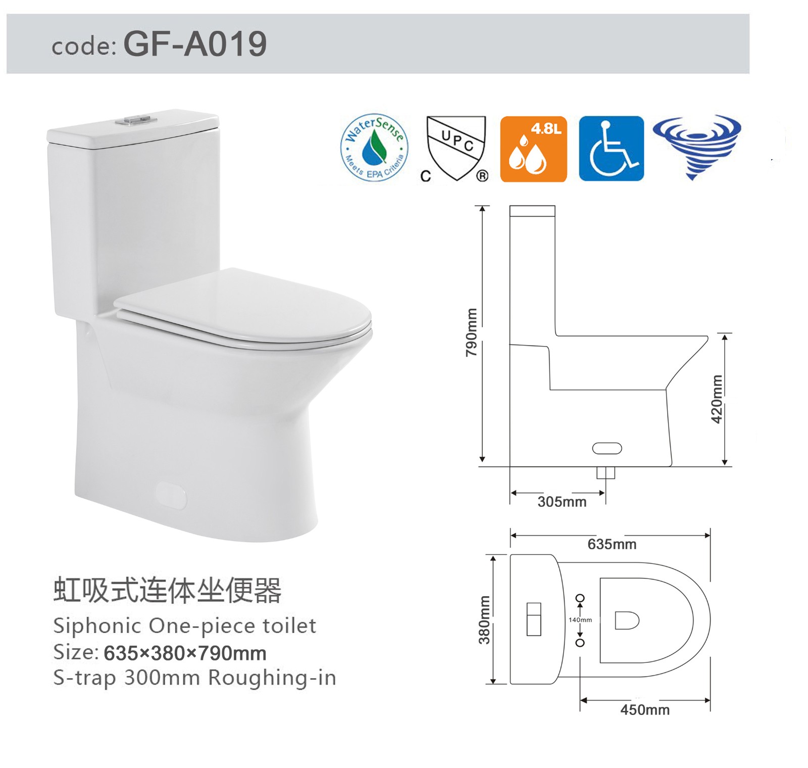 | Product Name: | cUPC Siphonic One-piece Toilet |